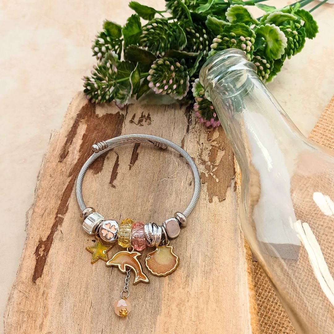 Find a look that’s uniquely you with our charming Pandora-style silver charm bracelet. Each bracelet is thoughtfully designed with a collection of meaningful charms. Firstly, the sturdy, twisted silver band provides a classic foundation. This serves as the perfect base for the beautiful charms. Next, explore our range of cute, trendy charms. These include playful dolphins, sparkling stars, and delicate shells. Additionally, you can find bracelets with colorful beads and lucky clovers. Each charm is crafted with attention to detail. Therefore, you receive a piece that’s both beautiful and durable.