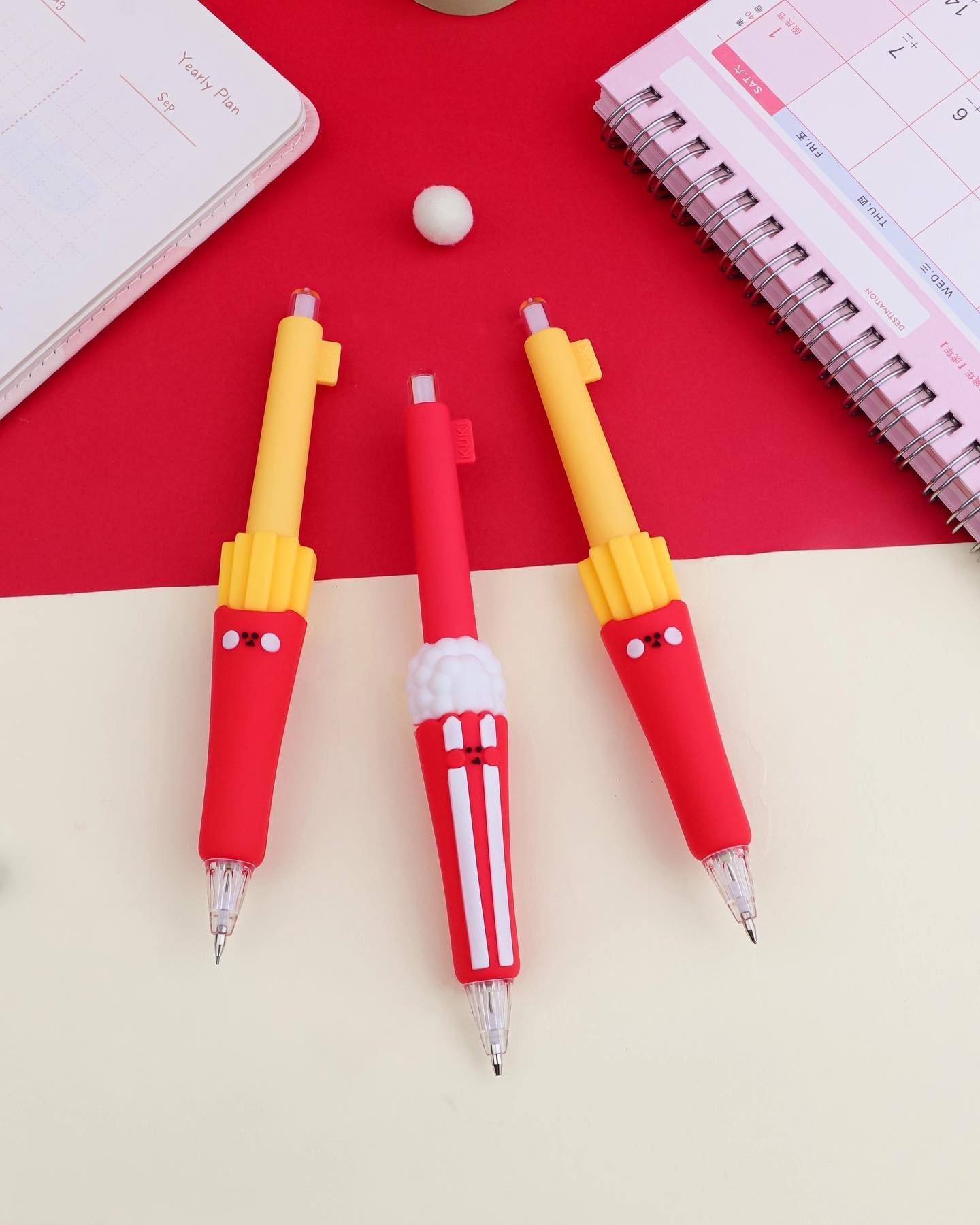 Let’s talk durability. The Cute French Fries and Popcorn Gel Pens are built to last. The sturdy construction ensures that they withstand the demands of daily use without sacrificing their charming appearance. Whether you’re jotting down quick notes or embarking on an artistic masterpiece, these pens are up to the task.