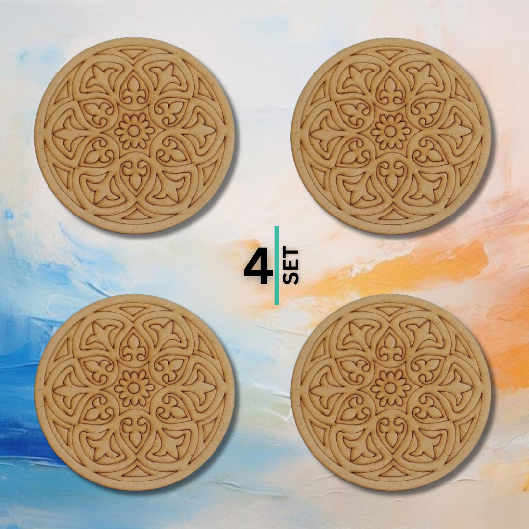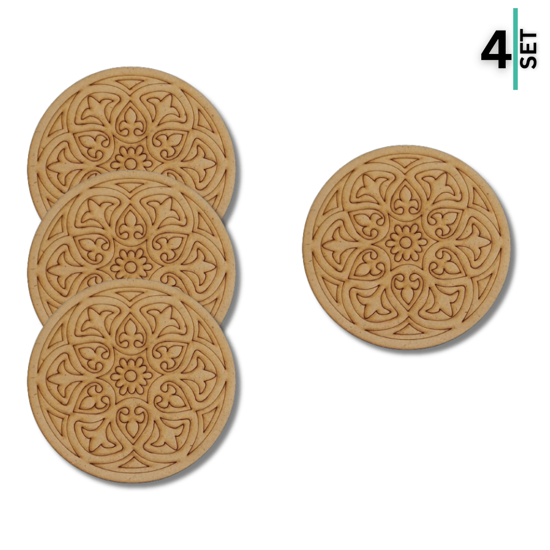 Create personalised DIY Round Rangoli coasters – Set of 4 with our DIY MDF coaster kit!