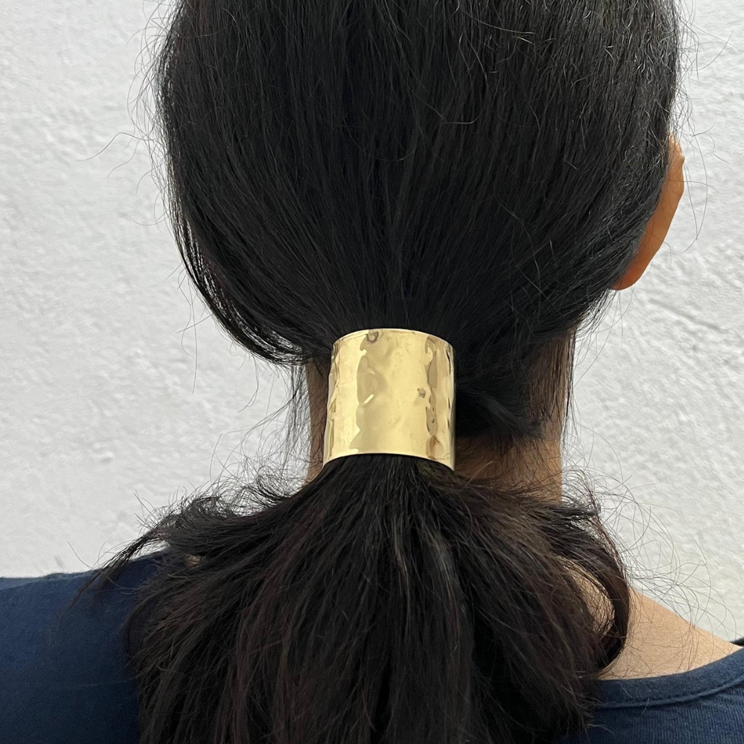 Elevate your everyday ponytail with the Gilded Grip, a sleek and sophisticated hair accessory designed for effortless elegance. Featuring a hammered gold-tone finish, this minimalist piece adds a touch of glamour to any hairstyle while offering a secure and comfortable hold.