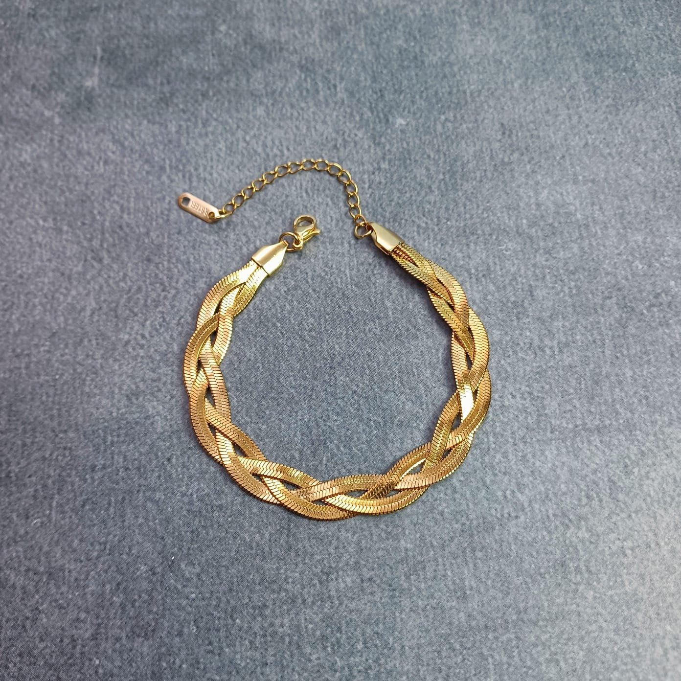 Perfect for everyday wear, this bracelet is light enough for comfort yet durable enough to last. Its classic braided style offers a versatile charm—wear it solo for understated elegance, or pair it with other bangles and chains for a chic stacked effect.