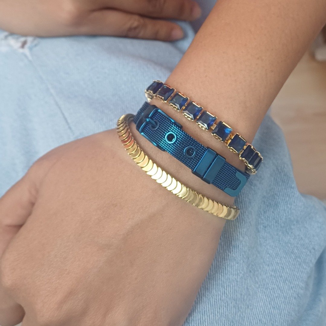 Combine it with thin bangles, delicate cuffs, or even a chunky watch to create your own arm stack. Its flat shape layers beautifully without bulk like in our Midnight Luxe Bracelet Stack