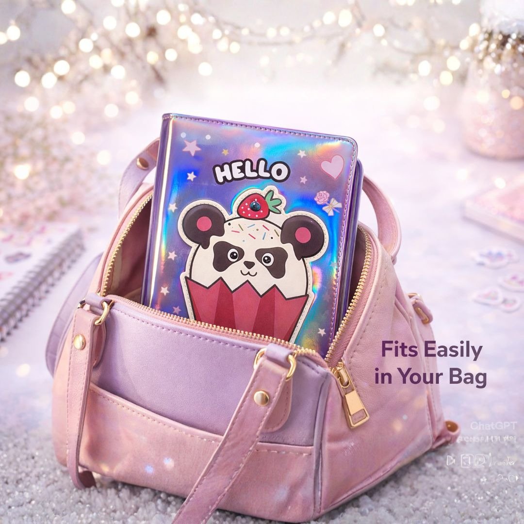Express your creativity with our Kawaii Holographic Panda Notebook, the perfect blend of “kawaii” culture and practical organization. Designed for the modern stationery enthusiast, this A5 journal features a vibrant iridescent cover that reflects a rainbow of colors.
