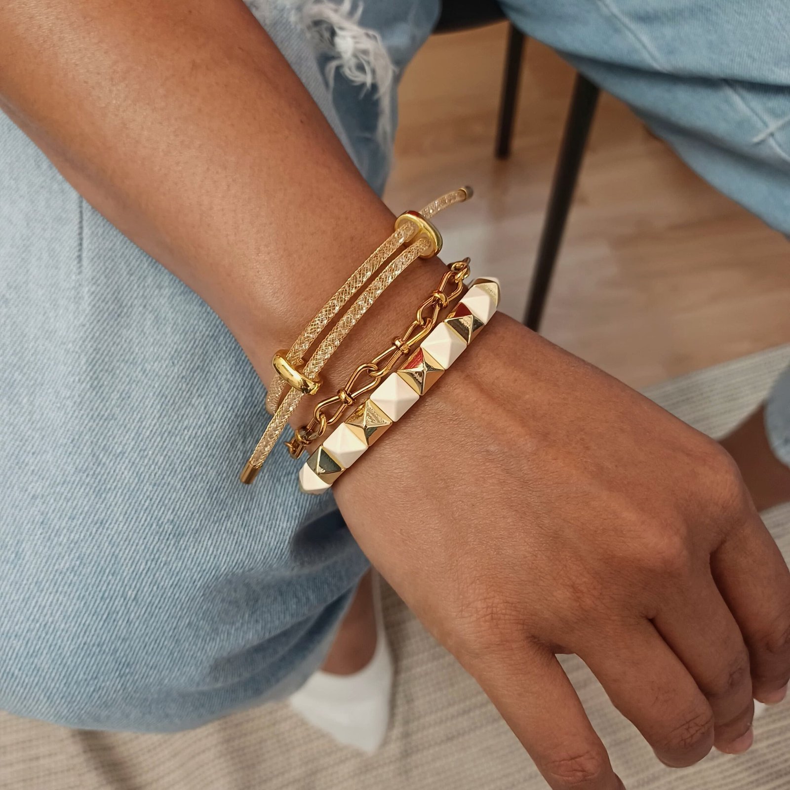Whether you’re styling it solo or stacking it with other slim bangles or leather wraps, the Modern Mesh Luxe Bracelet adapts seamlessly. Pair it with a tailored blazer and watch for a sleek office-ready look, or layer it alongside delicate chains for a trend-forward, stacked wrist. It also shines beautifully when worn with monochrome or neutral outfits, allowing the gold accents to pop.