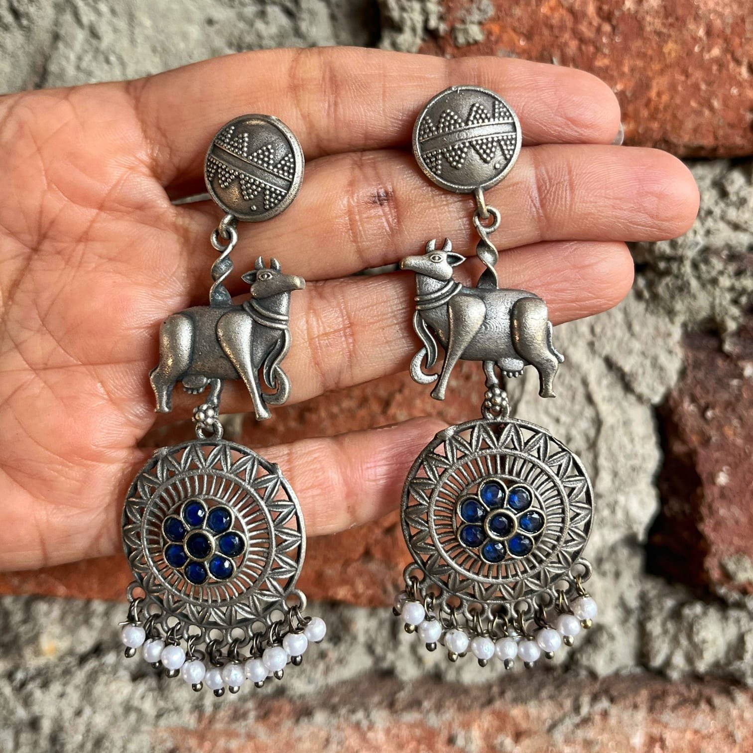 Nandi – Oxidised Silver with Blue Stones and Pearls