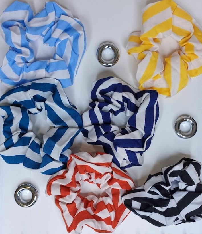 Simple nautical-themed scrunchie multipack. Perfect for everyday wear for women and children.