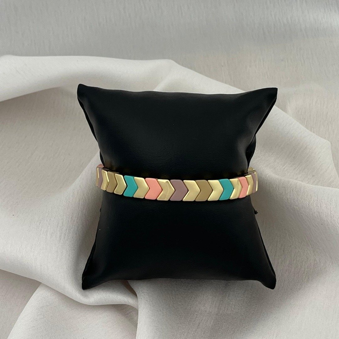 The Pastel Chevron Flow Bracelet brings a soft, joyful energy to your wrist. With its playful palette and polished finish, it’s made for those who enjoy adding a hint of personality to everyday looks.