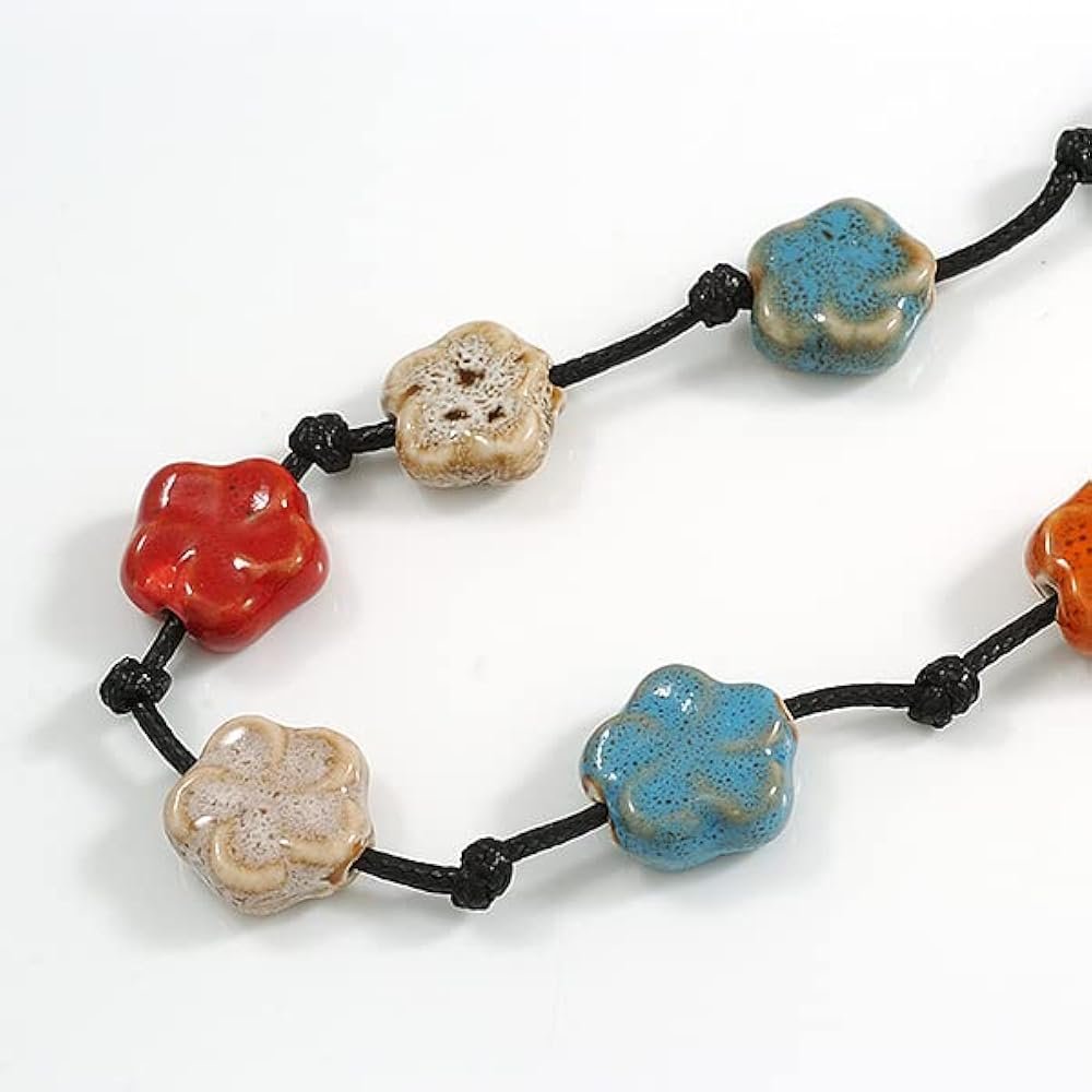 The Petal Poppin’ Necklace brings a cheerful burst of color and nature-inspired charm to your everyday wardrobe. Adorned with handcrafted ceramic beads shaped like delicate floral petals, this necklace is a celebration of playful design and artisanal texture. Each petal bead is individually glazed in vibrant hues — from bold reds and zesty oranges to calming blues and sunny yellows — making every piece slightly unique, like wildflowers in a meadow.