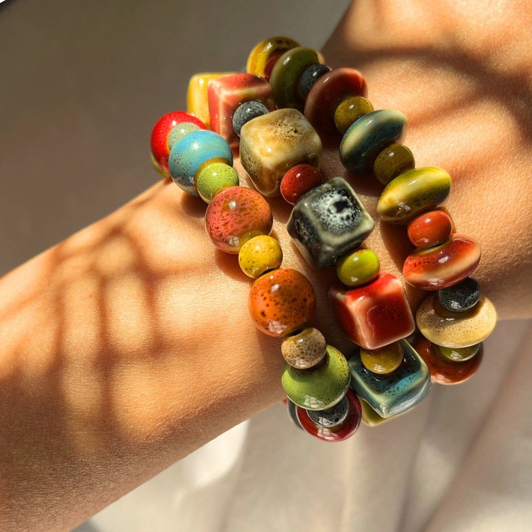 Jewellery should be more than just an accessory—it should be an expression of style. This handcrafted ceramic bead bracelet is a vibrant celebration of colour and creativity. Every bead is uniquely glazed, creating a beautiful blend of textures and tones. Whether paired with casual outfits or dressed up for a special occasion, this bracelet is a versatile and bold fashion choice.