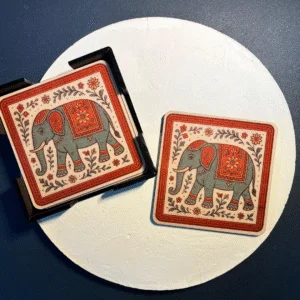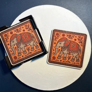 Looking to add a handcrafted element to your space or gift something meaningful? This Madhubani Elephant Coaster Set makes a subtle yet significant statement.