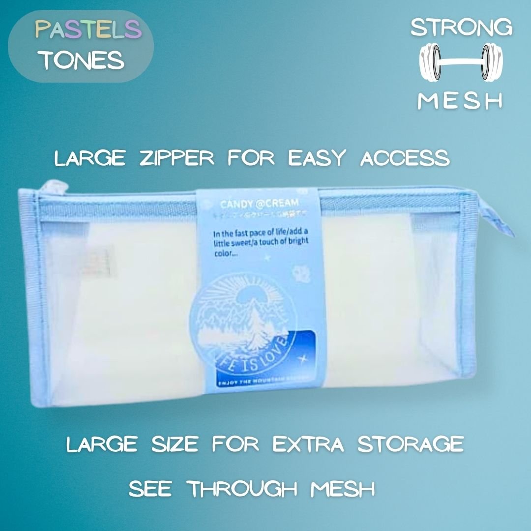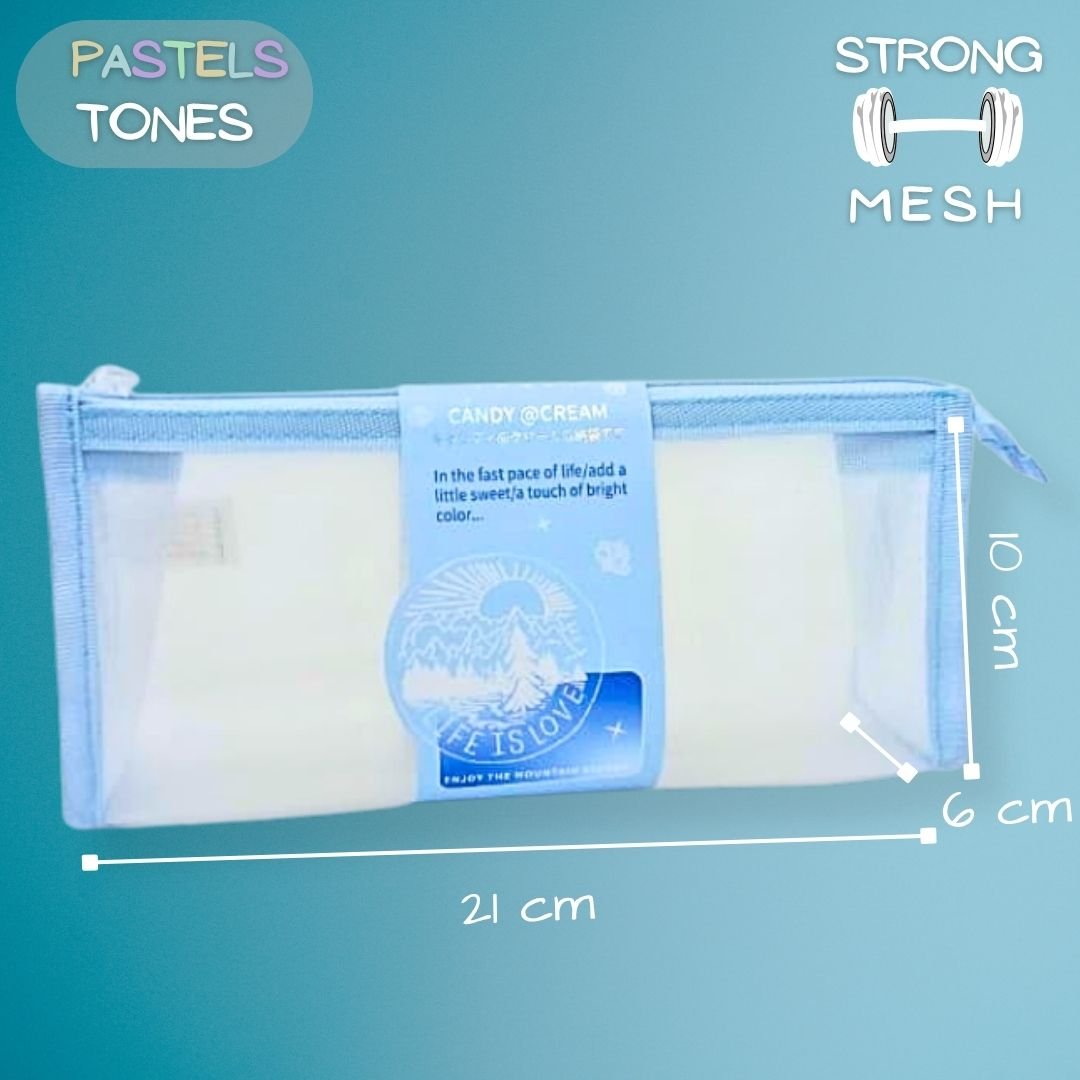 Introducing our Sky Blue Mesh Pouch, crafted to bring order and elegance to your daily essentials. Made from premium mesh material, this pouch is designed to be lightweight, transparent and versatile — perfect for a range of uses from stationery to travel.