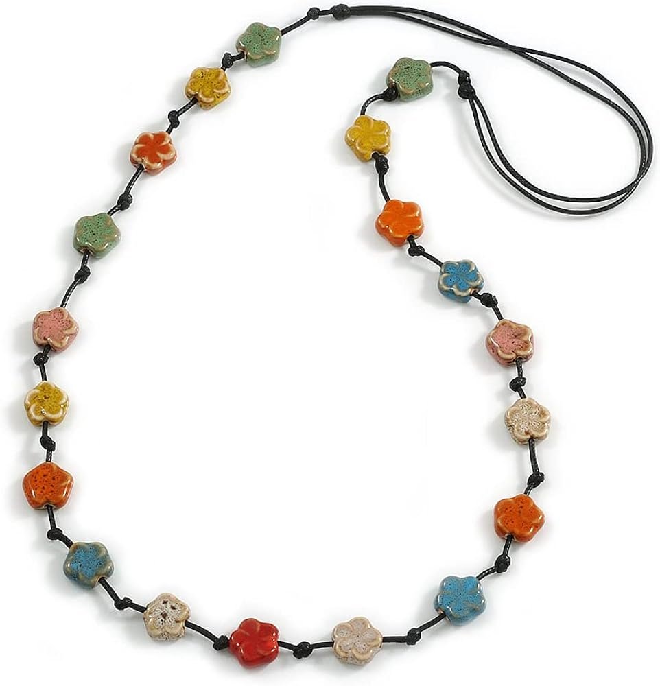 Material: Glazed Ceramic Beads, Black Cotton Cord