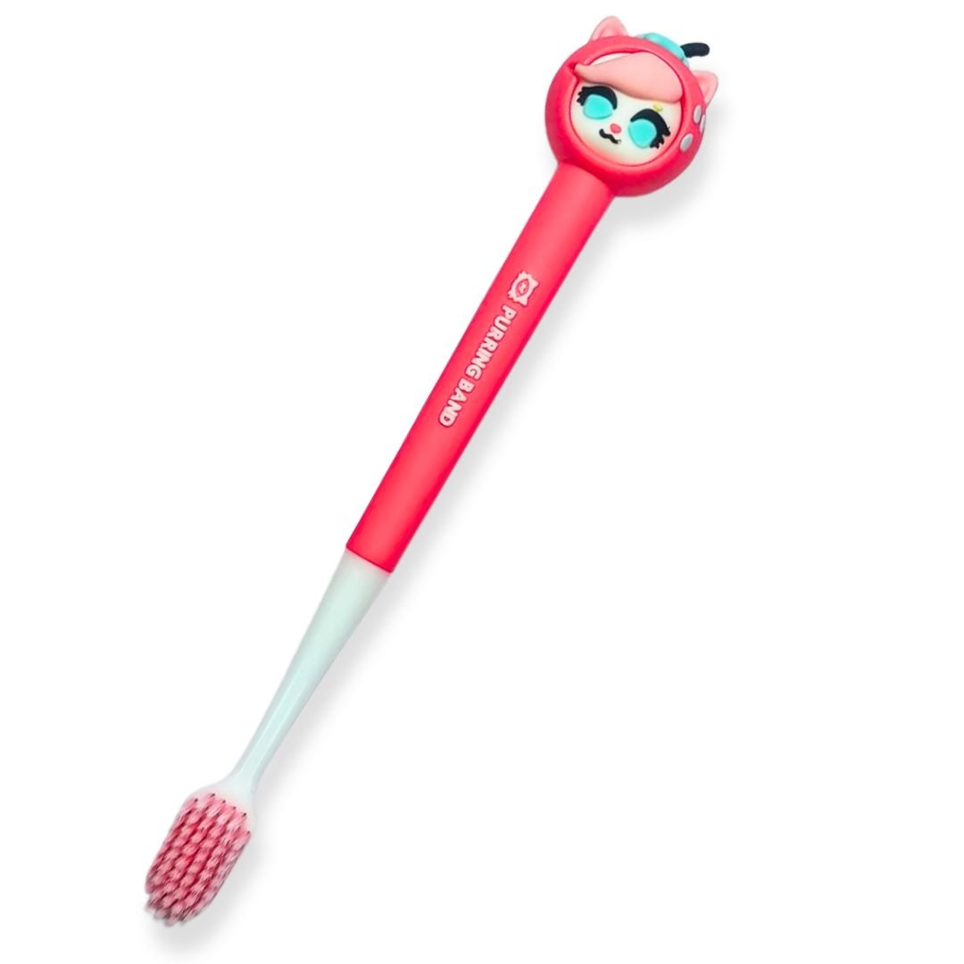 With a cute Strawberry Cat topper, this toothbrush makes kids excited to brush. The playful design encourages good dental habits from an early age.