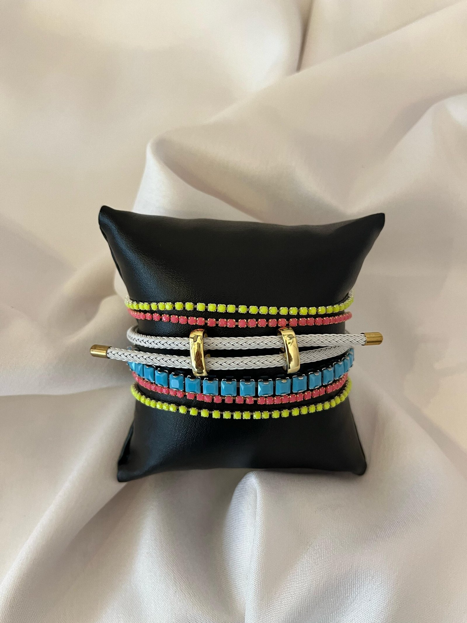 Crafted with high-quality materials, this bracelet stack is built to last. The colors stay bright and the gold-tone details keep their shine. Simply wipe clean after wear to maintain its fresh, vibrant look.